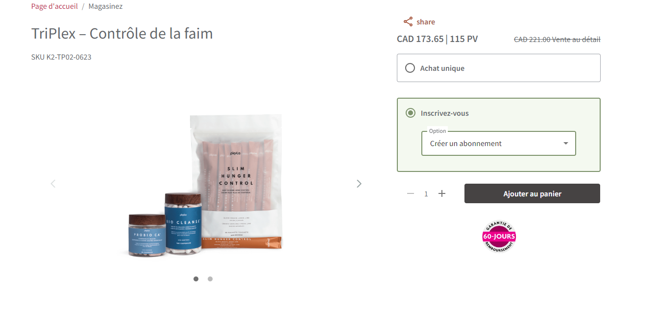 Sélectionner un produit Plexus et cliquer sur Voir les détails. |