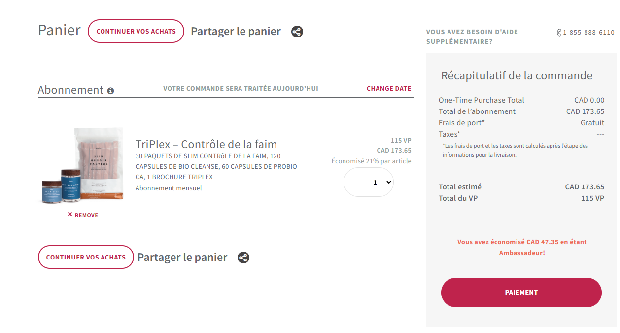 | Puis-je envoyer un lien de partage de panier pour créer automatiquement une commande de souscription? | Non. Le panier ne va pas automatiquement créer une commande de souscription. Assurez-vous de cliquer sur « Ajouter à la souscription » sous tout produit ou combo que la Cliente ou le Client désire dans sa future commande de souscription. |