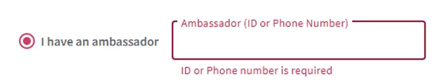 Si vous êtes Ambassadrice de Marque ou Ambassadeur de Marque et que votre client potentiel n’utilise pas ou n’est pas en mesure d’utiliser votre lien de référencement, vous pouvez leur demander d’inscrire votre ID d’Ambassadeur de Marque ou le numéro de téléphone apparaissant sur la page du paiement à la caisse.