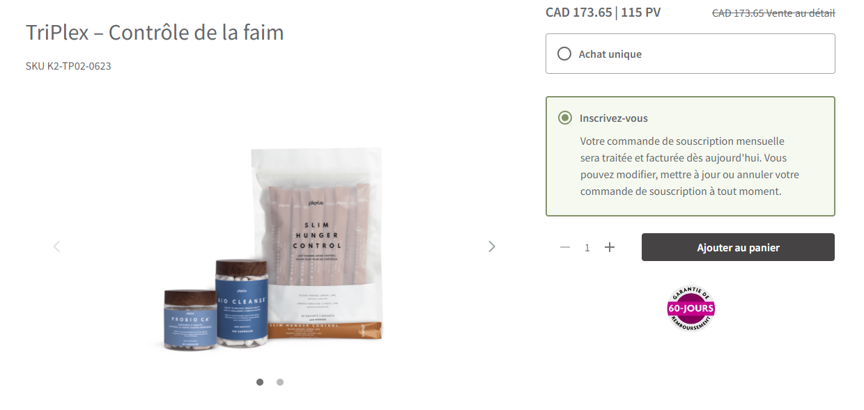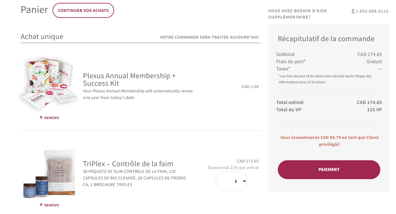 Les exigences à respecter pour devenir une Cliente VIP ou un Client VIP incluent un frais d’inscription à l’abonnement annuel Plexus de 13,09$ CAD. Les frais de renouvellement annuel de l’adhésion seront de 26,24$ CAD. En retour, les Clients VIP profitent de rabais sur les produits, ainsi que des autres bénéfices détaillés plus haut. Vous devez avoir 18 ans et plus pour vous inscrire à titre de Client VIP.