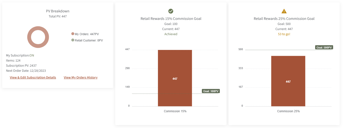 Le volume personnel (VP) se mérite par l’entremise des commandes placées par vos Clientes au détail et vos Clients au détail, ainsi que par vos commandes personnelles. Vous pouvez mériter des commissions sur le volume personnel, de différentes manières.